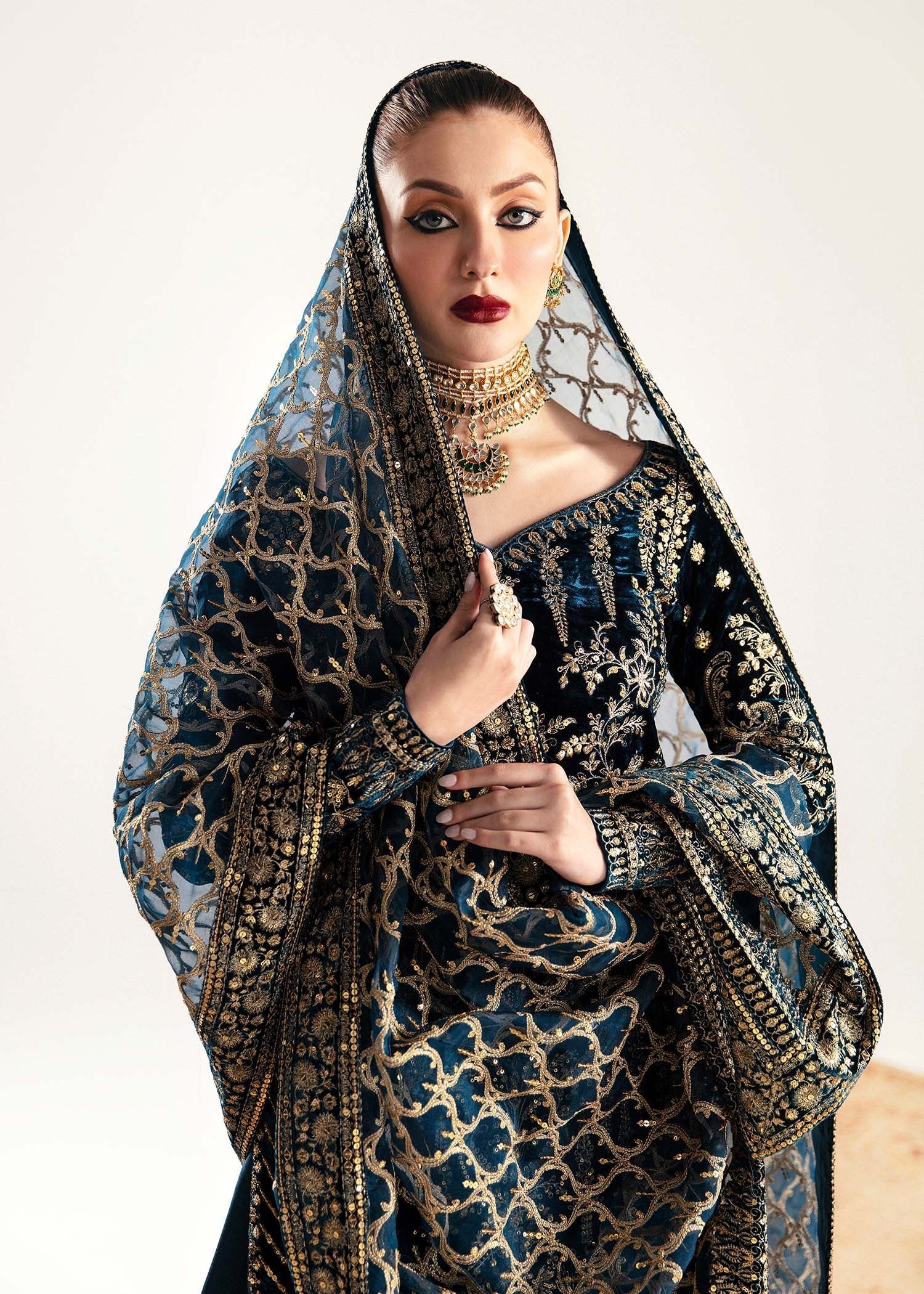 Silk Sharara Pants, a blend of luxury and traditional allure. The rich teal velvet shirt