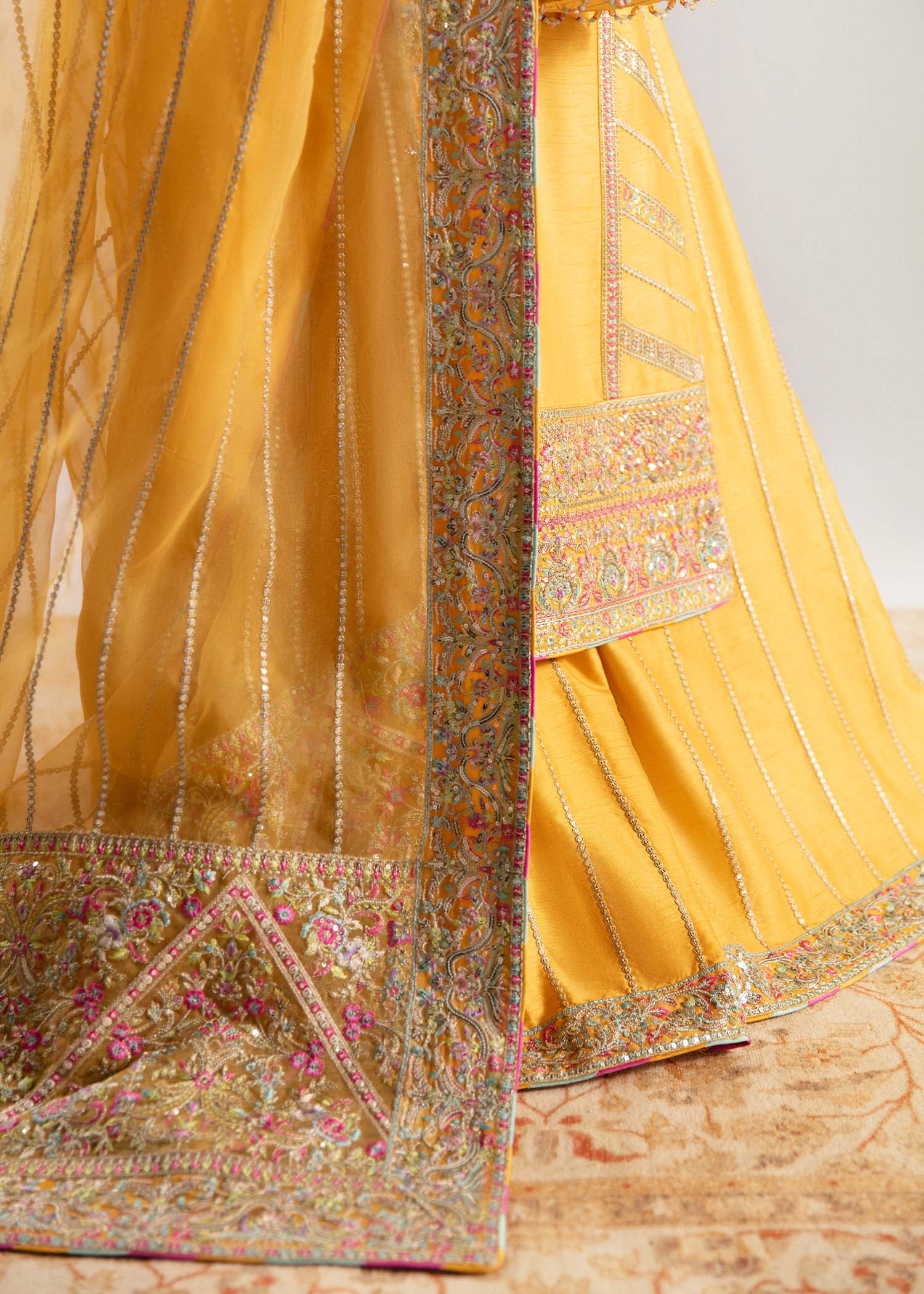 sophistication, while the Organza Dupatta with extended pallu borders creates a