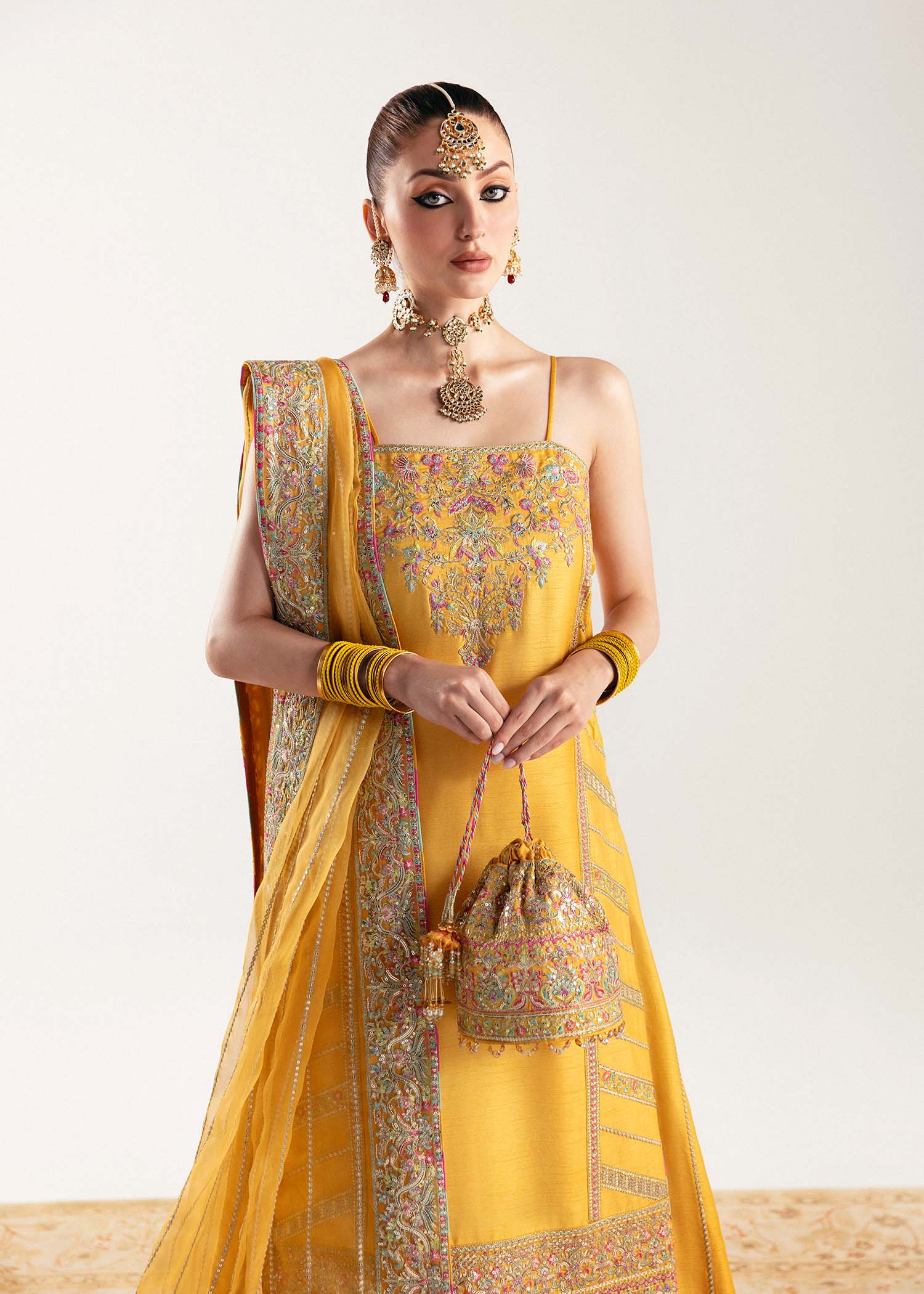 sunny yellow, intricate embroidery, and the graceful sway of organza