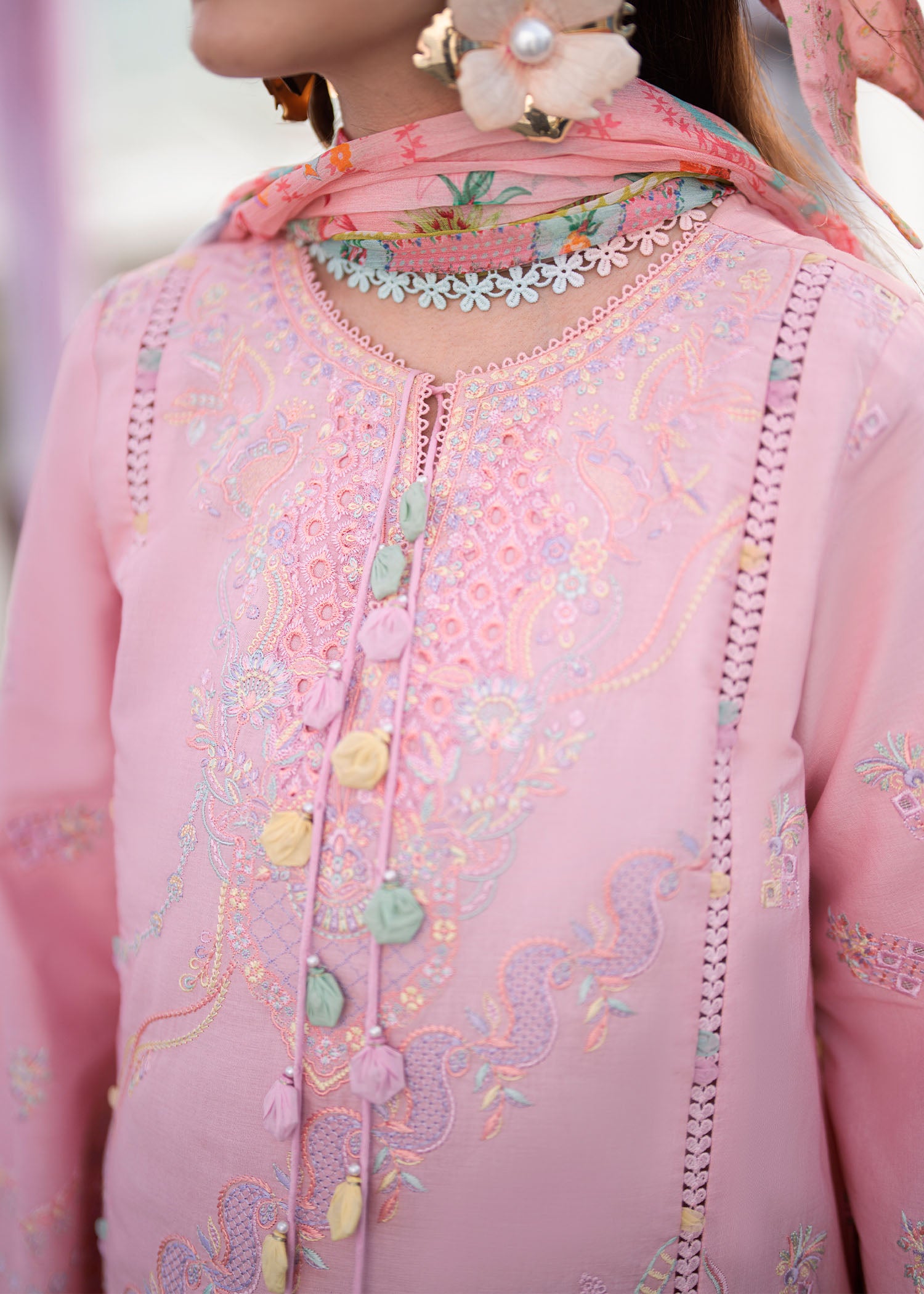 - Embroidered front center panel (lawn) – 1 pc