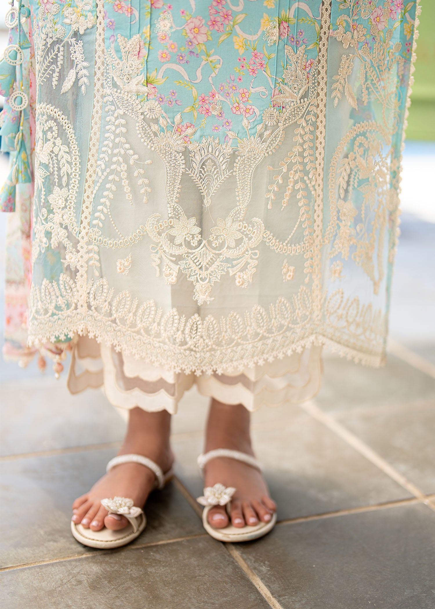 Soft and serene in a dreamy baby blue hue, “Tiya” is a graceful composition of modern elegance, featuring a beautifully embroidered and printed lawn front with delicately structured center and side panels that create a refined, flowing silhouette. The design is elevated with an intricately detailed organza neckline and refined patchwork that adds depth and artistry, while embroidered and printed sleeves bring a soft touch of charm. Paired with a lightweight cotton net printed dupatta and a classic cambric base, Tiya embodies effortless sophistication with a fresh, airy appeal.